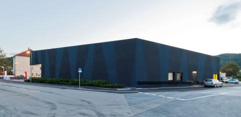 Černo-modrá fasáda pro nové nákupní centrum